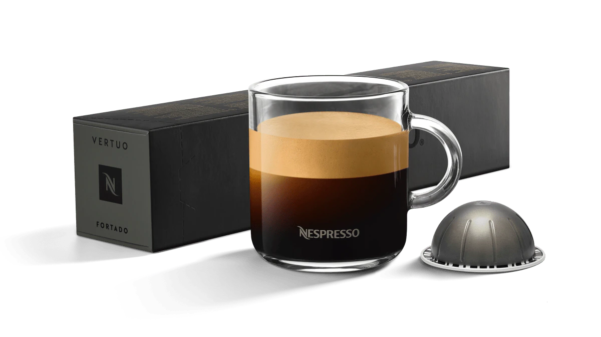 Fortado (Vertuo) ترکیبی قدرتمند از عربیکا و روبوستای جنوب و آمریکای مرکزی است که با رُستی تیره و بادی بالا، نُتهای کاکائو، بلوط و چوبهای سنگین را به همراه دارد. قهوهای پرانرژی و با شخصیت مردانه که تلخی و غلظت خاصی دارد.